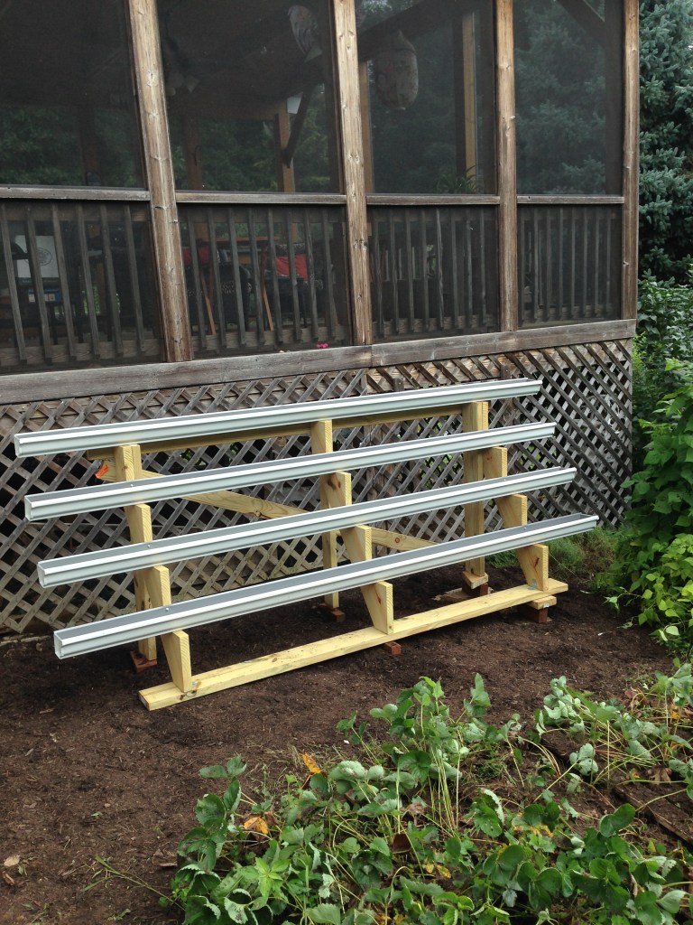 A “gutter garden” to grow lettuce in the shady area