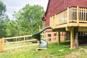 Recycled a slide from a play set to make the deck more fun for kids of all ages