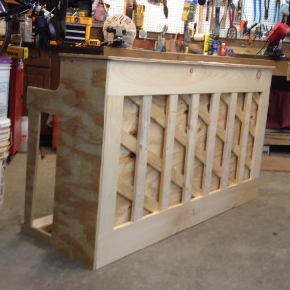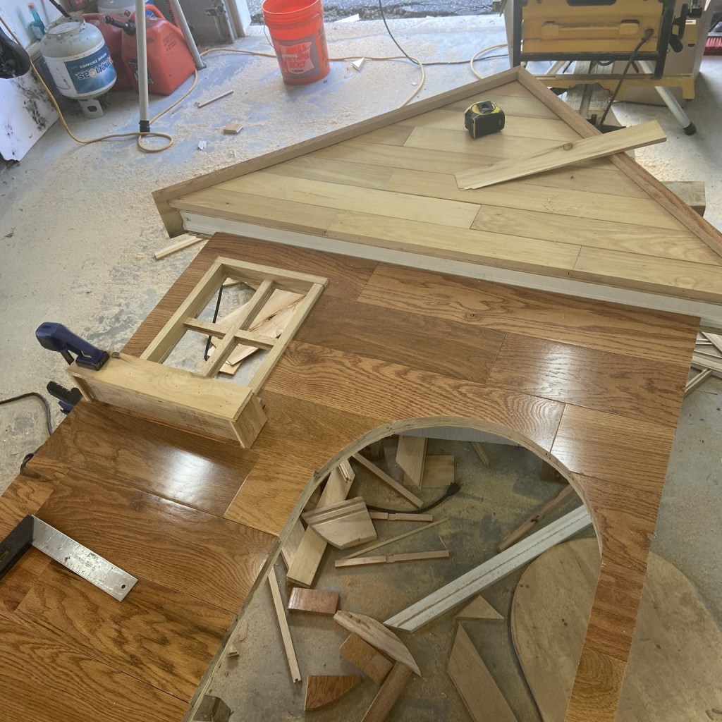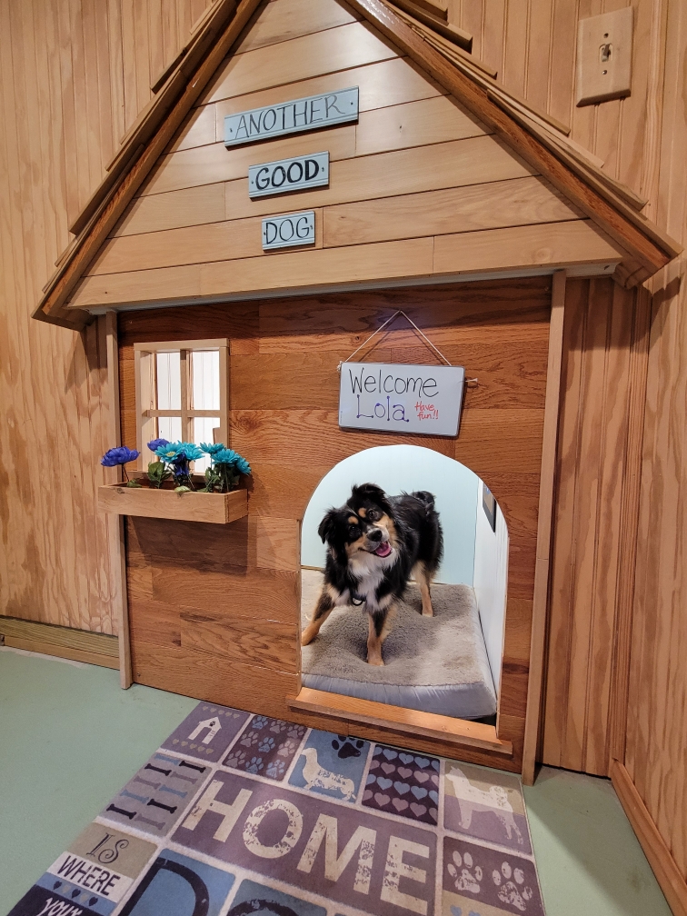 My wife loved the idea of a “Doghouse Under the Stairs” to showcase the dog-friendliness of our rental cabin. It was built off-site from scrap wood flooring.